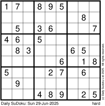 The Daily SuDoku: Sun 29-Jun-2025