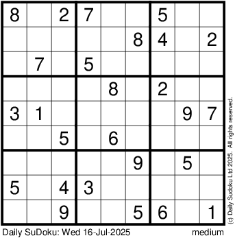 The Daily SuDoku: Wed 16-Jul-2025