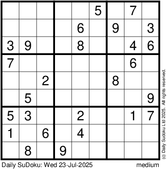 The Daily SuDoku: Wed 23-Jul-2025
