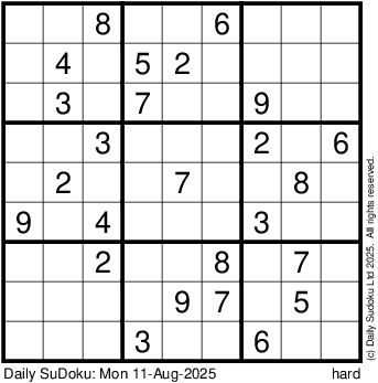 The Daily SuDoku: Mon 11-Aug-2025