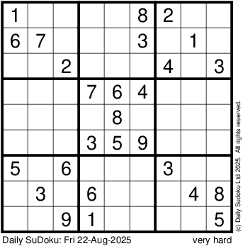 The Daily SuDoku: Fri 22-Aug-2025