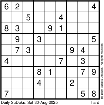 The Daily SuDoku: Sat 30-Aug-2025