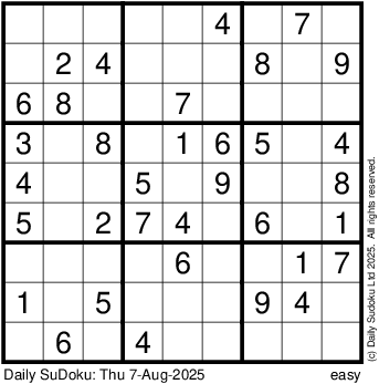 The Daily SuDoku: Thu 7-Aug-2025