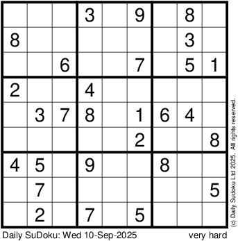 The Daily SuDoku: Wed 10-Sep-2025