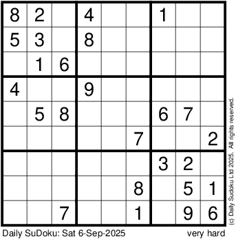 The Daily SuDoku: Sat 6-Sep-2025