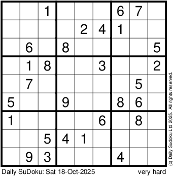 The Daily SuDoku: Sat 18-Oct-2025