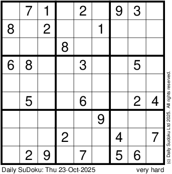 The Daily SuDoku: Thu 23-Oct-2025