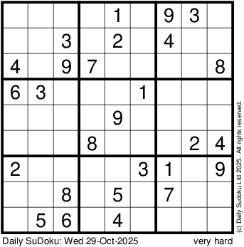 The Daily SuDoku: Wed 29-Oct-2025