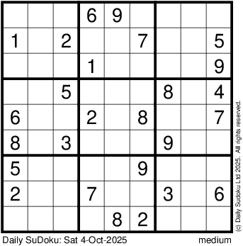 The Daily SuDoku: Sat 4-Oct-2025