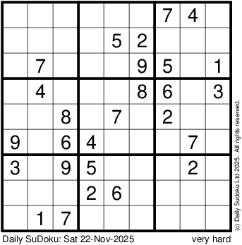 The Daily SuDoku: Sat 22-Nov-2025