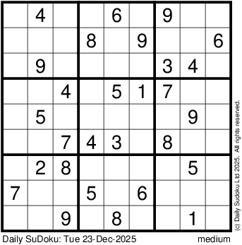 The Daily SuDoku: Tue 23-Dec-2025