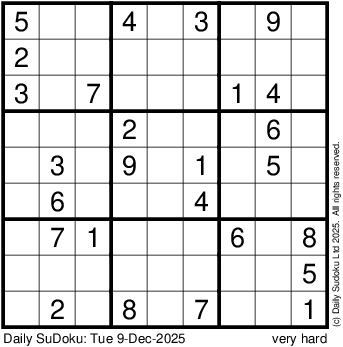 The Daily SuDoku: Tue 9-Dec-2025