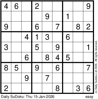 The Daily SuDoku: Thu 15-Jan-2026
