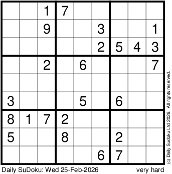 The Daily SuDoku: Wed 25-Feb-2026