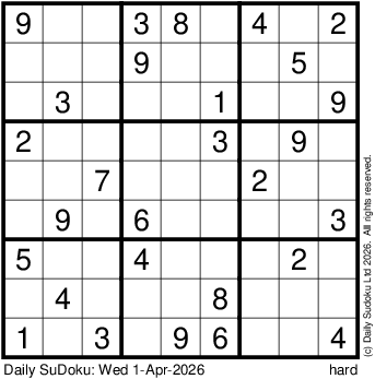 The Daily SuDoku: Wed 1-Apr-2026